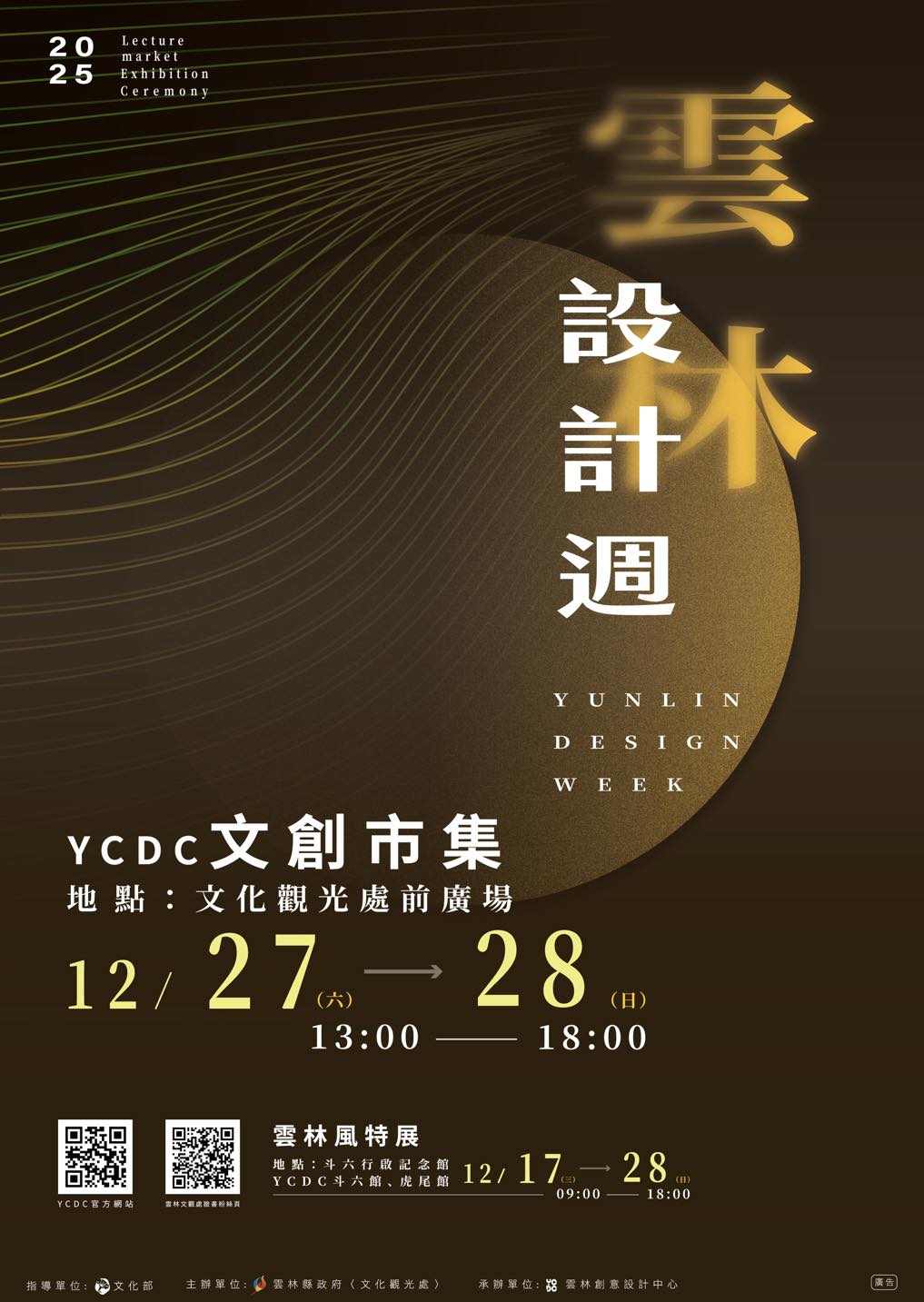 Hot News News 2025 年 12 月 26 日 #雲林設計週 X #YCDC文創市集 不只 #看展,也一起 #逛市集 ! 12/27(六)–12/28(日), 在 #文化觀光處前廣場, 我們集結 #60攤 雲林在地與特色品牌, 把設計、風土與日常, 一次帶進週末的散步路線裡。 市集現場不只有#好逛、#好買, 也有 #精彩表演 , 讓聲音、節奏與人群流動, 成為設計週裡另一種被感受的風景。 市集地點|文化觀光處前廣場 市集時間|12/27(六)–12/28(日)13:00–18:00